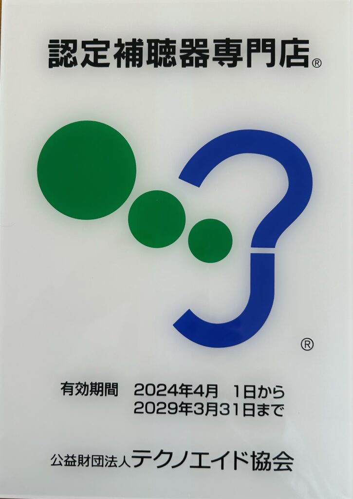 補聴器専門店伝次郎は、公益財団法人テクノエイド協会が認定した『認定補聴器専門店』です。