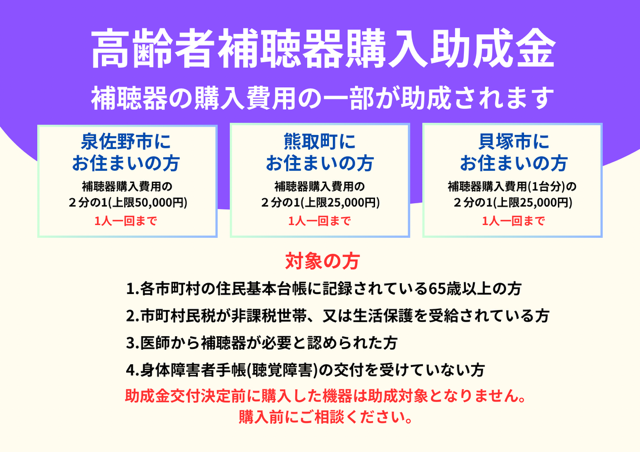 助成金を利用して費用の一部を負担することで補聴器を購入することが出来ます。