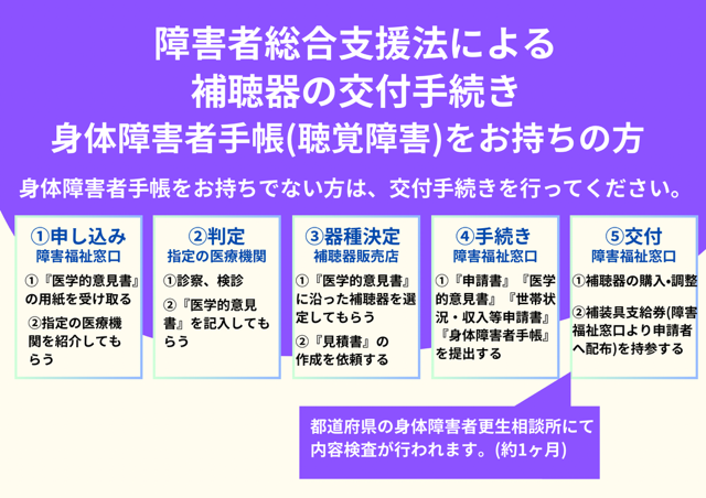 基準のレベルよりも聞こえが悪い方は障害者支援法により必要な手続きを踏んで給付判定がおりれば